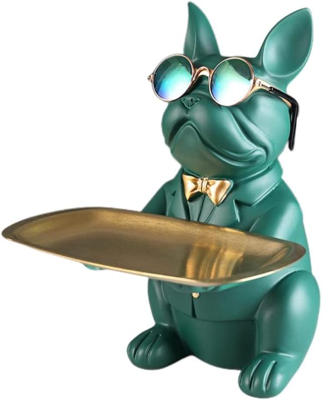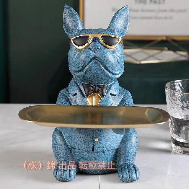 シンプルなユニークな形状、高輝度と活発な色、繊細な職人の技。クールフレンチブルドッグ置物収納トレイ家の装飾アート彫刻置物。