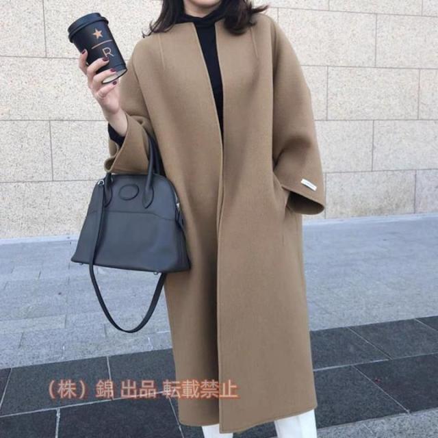 ノーカラーコート レディース 秋冬コート 50代 チェスターコート アウター ロングコート株式会社錦防寒着 長袖 ウィンドブレーカー 羽織り 暖かい ゆったり 防寒