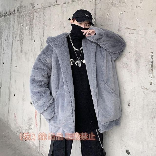 秋冬物 モコモコ 無地 アウター コート 暖かい メンズ 軽量 男性 フェイクファー 厚手 上品 長袖 軽量 ジャケット株式会社錦 体型カバー フード付き
