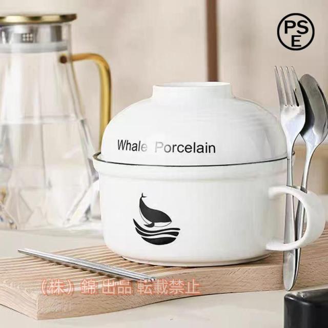 ラーメン丼 インスタントラーメン鉢 蓋付きセラミック国産ラーメン丼 電子レンジ対応の日本の食器 軽い 株式会社錦 割れにくい 無料のスプーンと箸