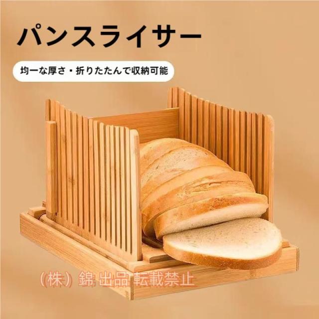 食パンカットガイド食パンスライサー株式会社錦竹製折り畳み式省スペース調整可能使いやすい収納簡単パンカッターパン切り包丁ガイド竹素材パン切りガイド