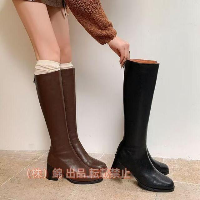 ロングブーツレディーススクエアトゥロング丈太めヒールストレッチ白ブーツおしゃれきれいめPU美脚株式会社錦履きやすい歩きやすい黒白大人秋冬全4色