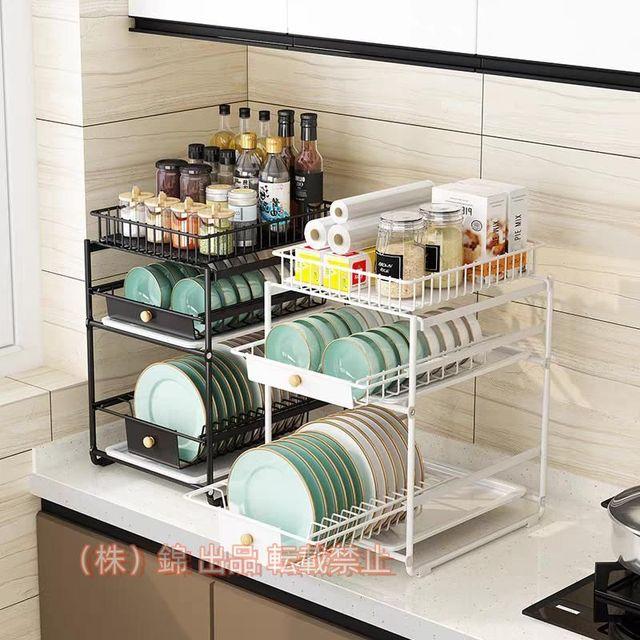 水切りかご皿立て水切り排水水切りバスケット2段3段スリム引き出し式スペース食器置きキッチン収納抗菌食器乾燥食器置き株式会社錦キッチン用品おしゃれ
