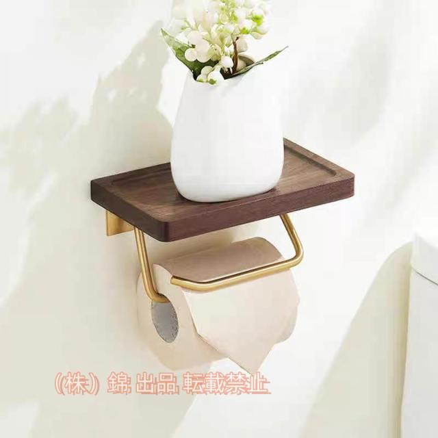 トイレットペーパーホルダー 真鍮製ダブルフック アンティーク 北欧 木製 アイアン ブラウン ペーパーホルダー 棚 棚付き 株式会社錦 小物置きおしゃれ 収納