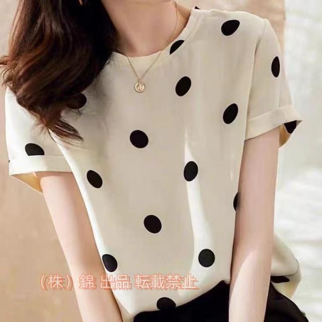 ス レディース ブラウス シャツ カットソー 半袖 ドット柄 株式会社錦水玉 フェミニン 可愛い 春夏