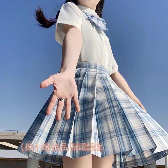 3点セット学生服女子高生女子制服スクールシャツ女子半袖ブラウス白スクールスカートチェックプリーツ株式会社錦スカートりぼん制服リボンネクタイ