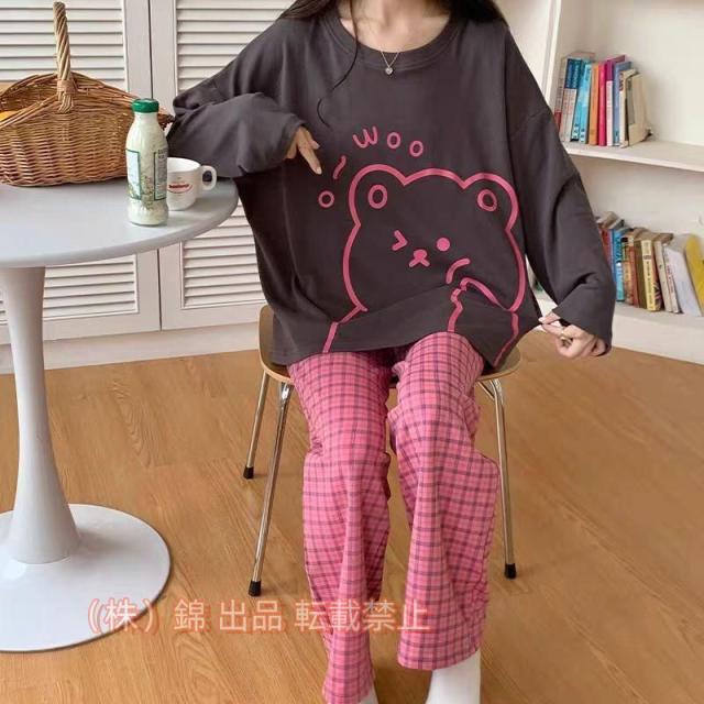 パジャマ レディース ルームウエア 綿 2点セット ロングパンツ 長袖 上下セット春秋 株式会社錦可愛い レディースパジャマ 大きいサイズ 部屋着 寝巻き かわいい
