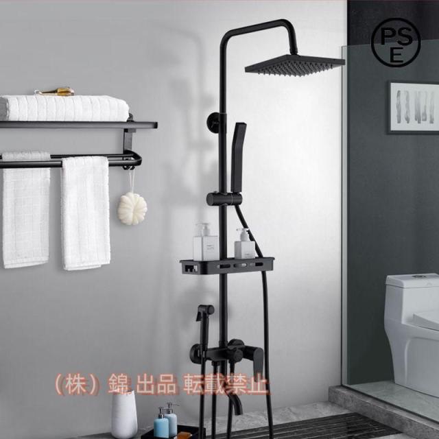 シャワーヘッド3機能ブラックゴールドメッキシャワーシステムシャワーセット錦真鍮シャワー蛇口ステンレス鋼ボディABSスクエアシャワーヘッドハンドヘルドスプレ