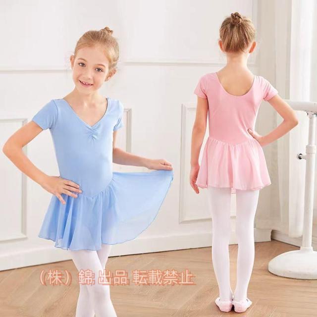 送料無料バレエレオタード子供用半袖キッズバレエ衣装子供用女の子スナップボタンキッズウェア株式会社錦体操ダンス練習服ステージ衣装シンプルワンピース