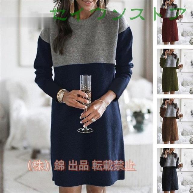ニットワンピース レディース チュニックワンピース 秋 冬 ニットワンピース 長袖 ニットワンピ 体型カバー 上品 バイカラー 大人 ママワンピース 30代 40代 50代 上品 きれいめ ニット 秋 冬 ニットワンピース 着回し 体型カバー カジュアル チュニック ロングセーター