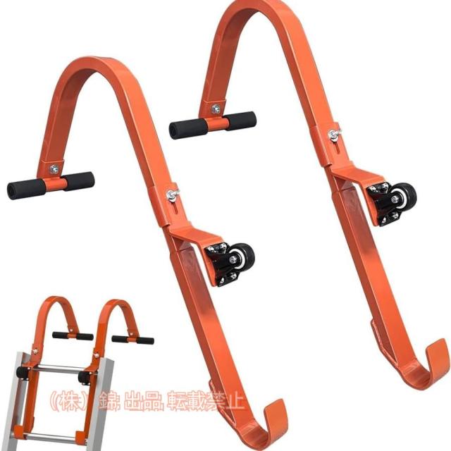 はしごスタビライザー 2個 ルーフラダーフック ホイール付き ホイールラバーグリップTバー付き 丈夫で安定 株式会社錦 壁用スチールルーフリッジラダーフック