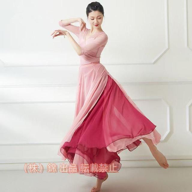 送料無料ダンススカート大きい裾720°巻きスカート古典ダンス衣装シフォン無地舞台衣装練習用株式会社錦おしゃれかわいい社交ダンス衣装5色入荷ブラックピ