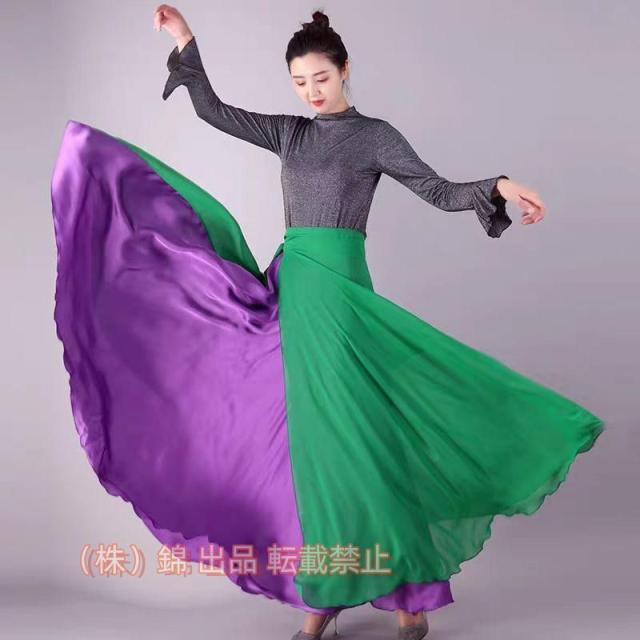 送料無料ダンススカート大きい裾720°巻きスカートシフォン無地舞台衣装練習用おしゃれかわいい株式会社錦社交ダンス衣装17色入荷ブラックホワイトレッド