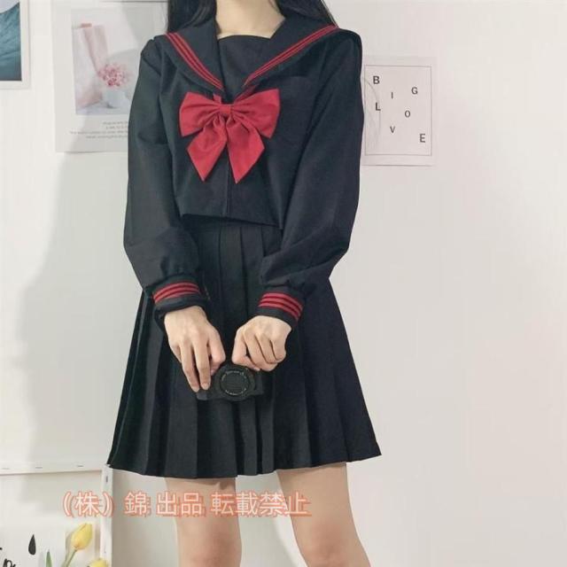セーラー服ブラック黒長袖半袖女子高生赤蝶結ぶ3点セットコスプレJK制服スカート上下セット株式会社錦女子制服ハロウィーン仮装本格三本文化祭