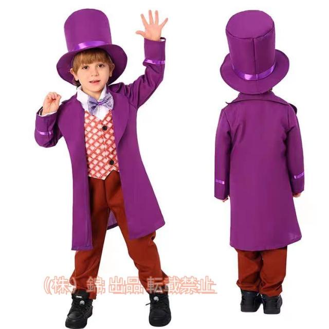 ハロウィン衣装子供男の子コスプレパープル魔法使い紳士ヨーロッパ風小学生ジャケットズボンハロウィーン4点セット株式会社錦子ども男子キッズマジシャン