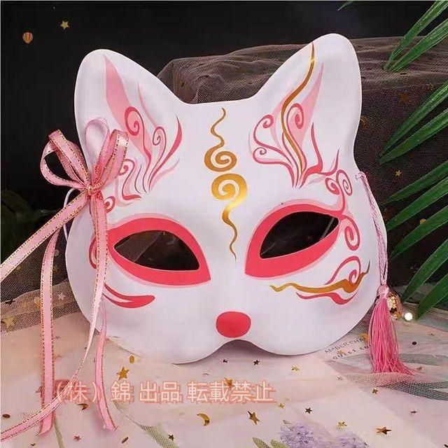 女の子 猫 ネコ マスク 花柄 かわいい 正月 鈴 リボン コサージュ コスプレ 変装 変身 株式会社錦おめん タッセル