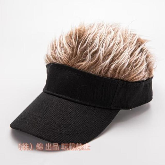 キャップ ウィッグ付き サンバイザー風 メンズ 男性用 帽子 ぼうし つば付き つば広 金髪 白髪 黒髪 かつら 髪の毛株式会社錦 ショート 一体型 調節可能