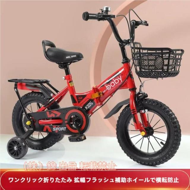 子供用折りたたみ自転車14インチキッズバイク子供用自転車高さ調節可能補助輪付きカゴ付き幼児用自転車株式会社錦2~10歳男の子女の子子ども用小学生用誕生日プ