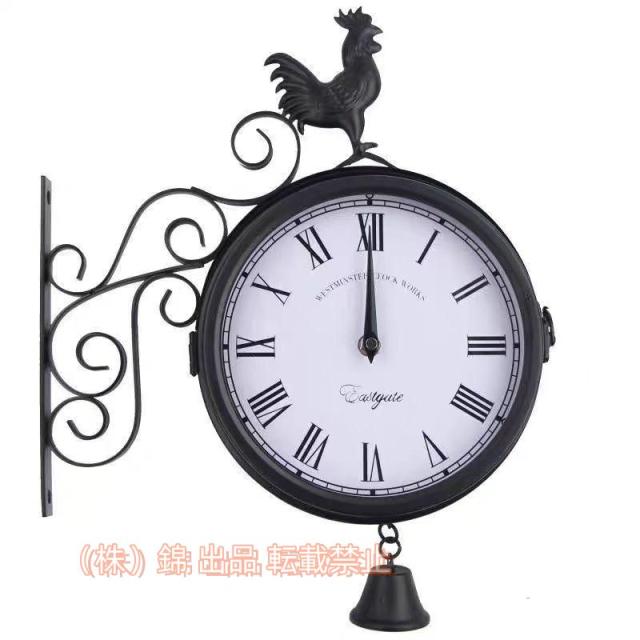 両面壁掛け時計 屋外ガーデンウォールステーションクロック 家の装飾株式会社錦 おんどりヴィンテージレトロ