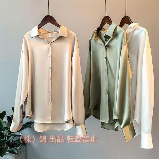 サテン調 ブラウス とろみ シャツ トップス レディース 長袖 長袖シャツ シャツブラウス ワイシャツ オフィス株式会社錦 カジュアル シフォン シルクタッチ