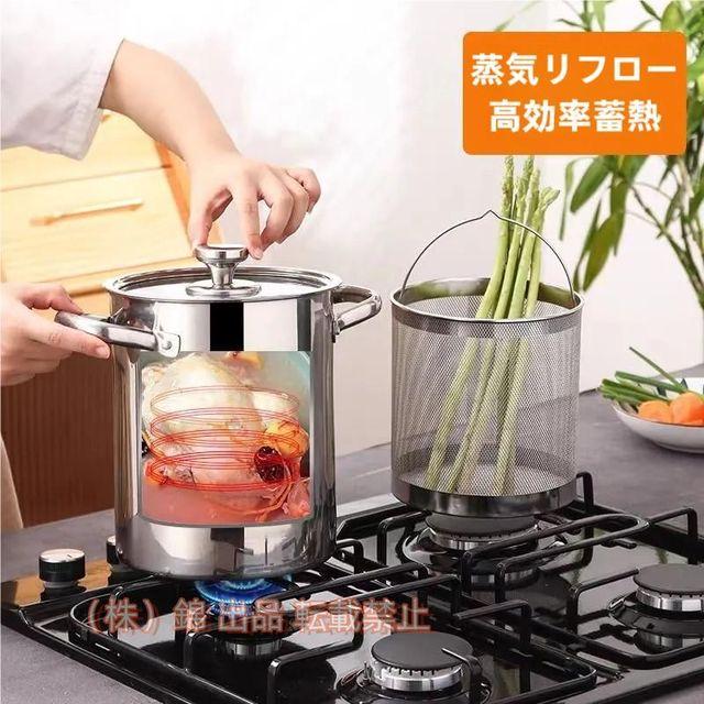 ・★【高品質材質】本体+中子:18-10(304)ステンレス鋼。取っ手:ステンレス鋼。ガラス蓋:強化ガラス(全面物理強化)、蓋金属部/ステンレス鋼。