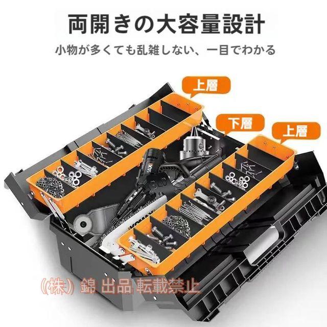 ツールボックス大容量工具箱2段折りたたみ式工具収納ケース両開き工具入れ取っ手付金具株式会社錦収納ボックスシステム収納BOXタックルボックス積み重ね収納