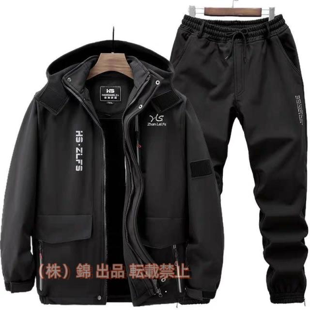 セットアップメンズ上下セット裏起毛迷彩服作業服防水ジャケットアメカジパンツアウター暖かいフード付き防風株式会社錦アウトドアウェアズボン秋冬