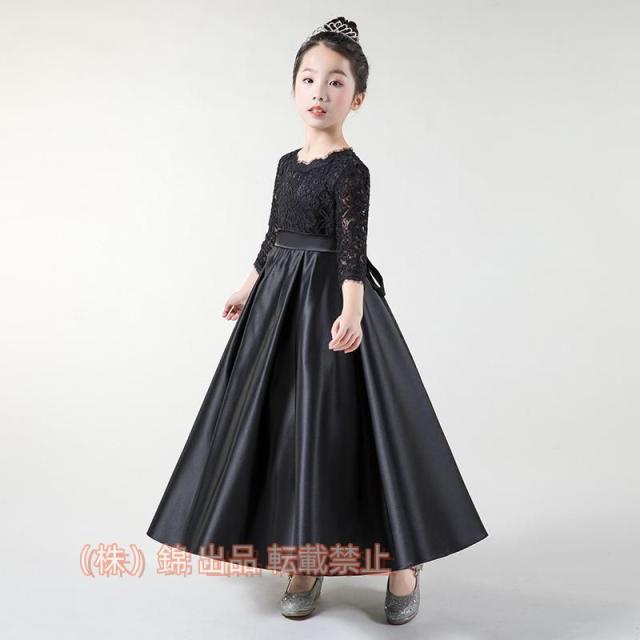 子供ロングドレス 黒 袖あり キッズドレス 結婚式 ピアノ発表会 ドレス 150 ドレス 株式会社錦 ジュニア ピアノ