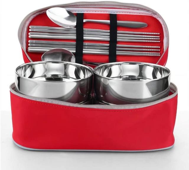 【便利な設計】収納バッグ付き、高品質の牛津布は丈夫で長持ちし、携帯が便利です。お弁当、ランチタイム、通勤、通学、アウトドア、キャップ、旅行等に最適です。ステンレス製食器セット、耐久性が強く、安全衛生、エコ、ポータブル、スペースを節約、洗いやすく、保管や持ち運びが便利になります。日常のお手入れがとても簡単です。