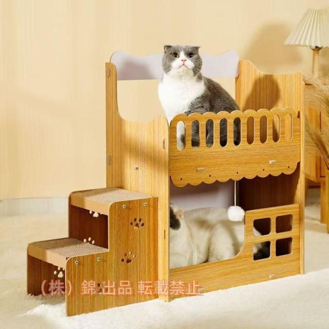 猫 爪研ぎハウス 木製 二層 キャットハウス 爪とぎ 猫ハウス 段ボール 階段 組み立て式 ダンボールハウス 株式会社錦耐荷重30KG 猫 爪研ぎ 高密度段ボール