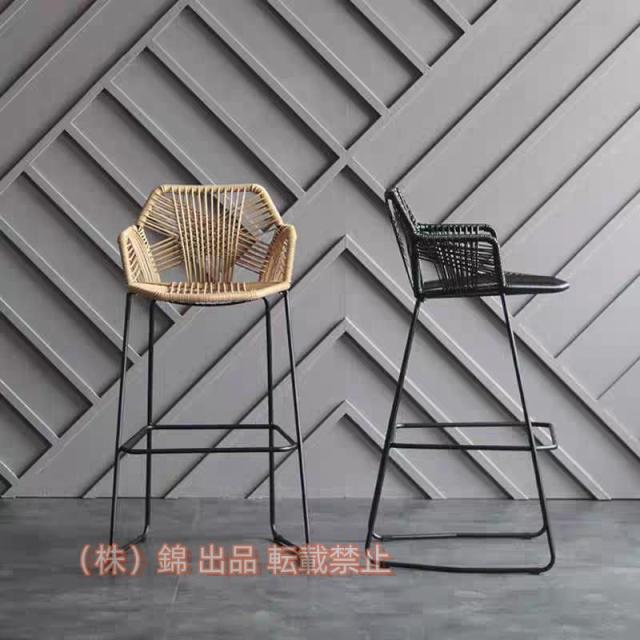 北欧籐籐ダイニングチェア鍛造アイアンバースツール6575cmハイスツールレストランカフェスツールバースツールカフェ朝食カウンターチェア錦(カラー:2ピースセ