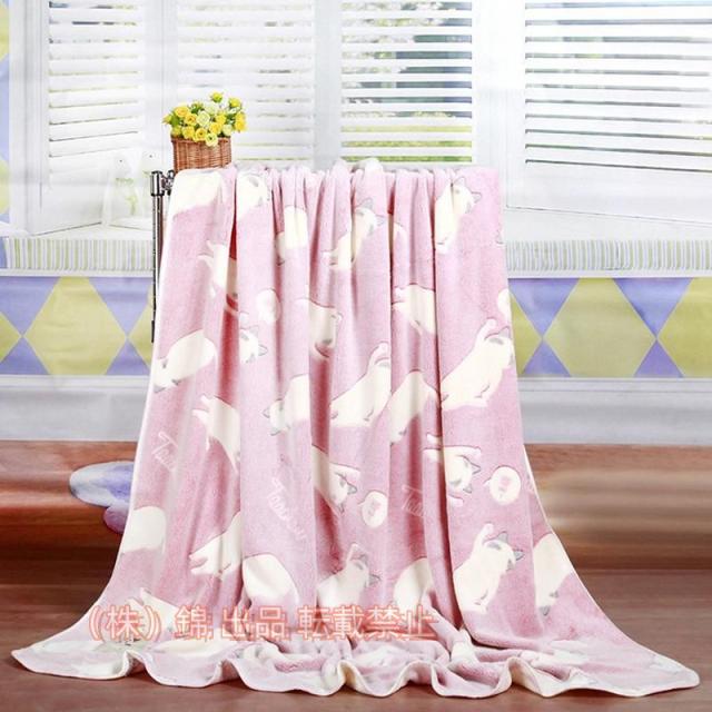 ブランケット かわいい 猫柄 ひざ掛け 掛け毛布 フランネル 毛布 お昼寝 防寒 冷房対策 四季通用株式会社錦 (ピンク 150*200cm)