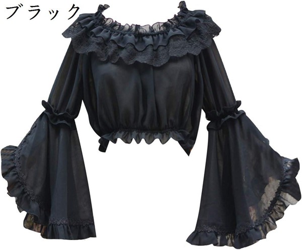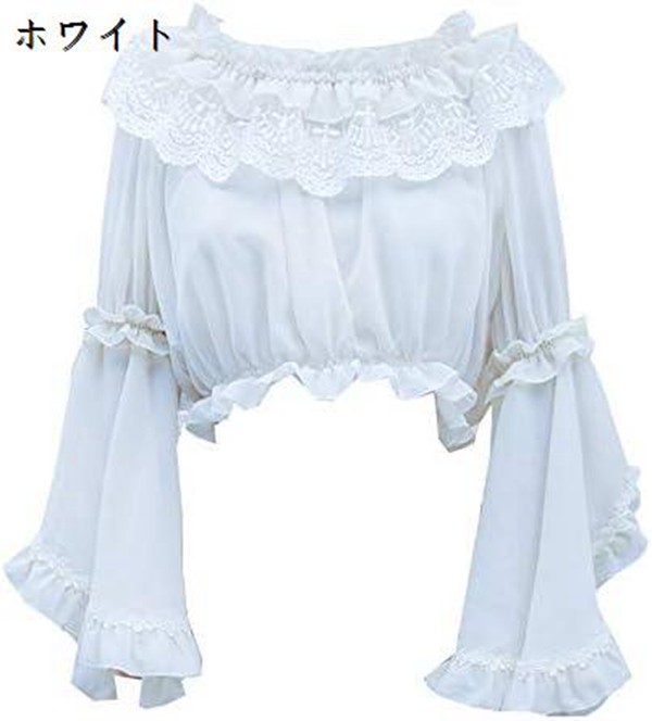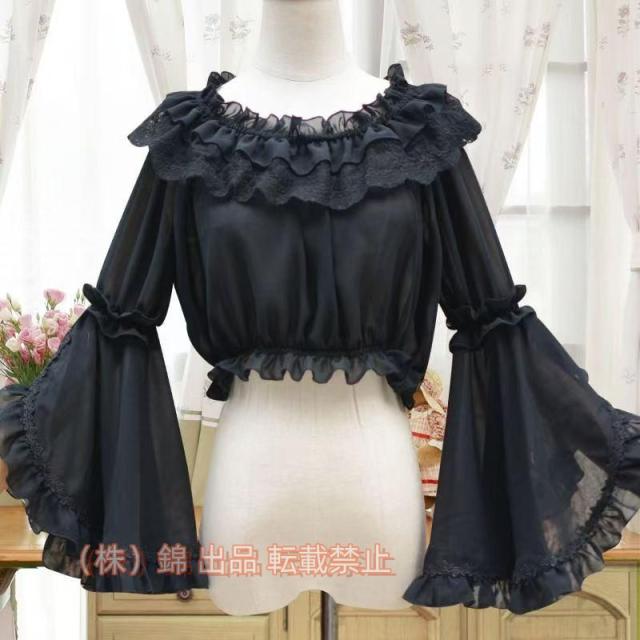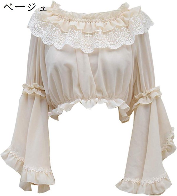 ロリータ シフォンブラウス レディースシャツ 姫袖 長袖 丸襟 リボン ベージュ ロリィタブラウス レース 株式会社錦フリルブラウス お茶会 貴族