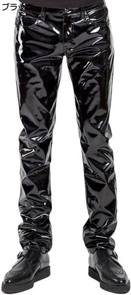 魅力的な光沢とクラシックなデザインが特徴のメンズウェットルックパテントレザーパンツ!