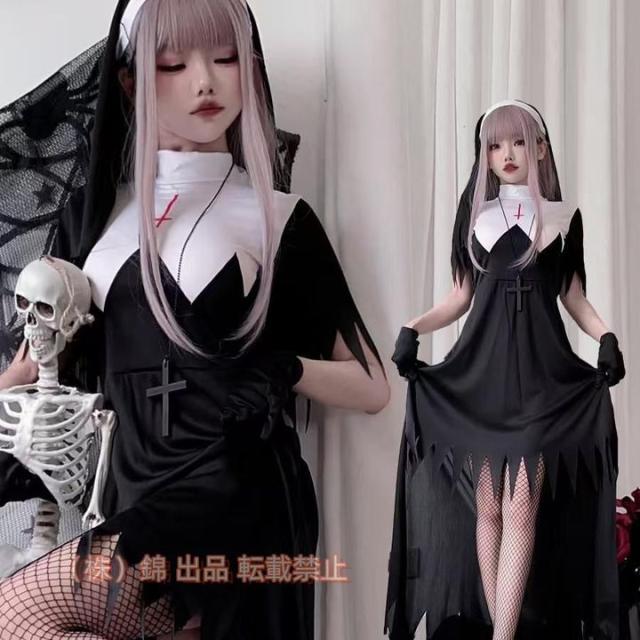 ハロウィーン レディース シスター 聖女 修道女 修女 ロング コスチューム 株式会社錦衣装 3点セット シスター