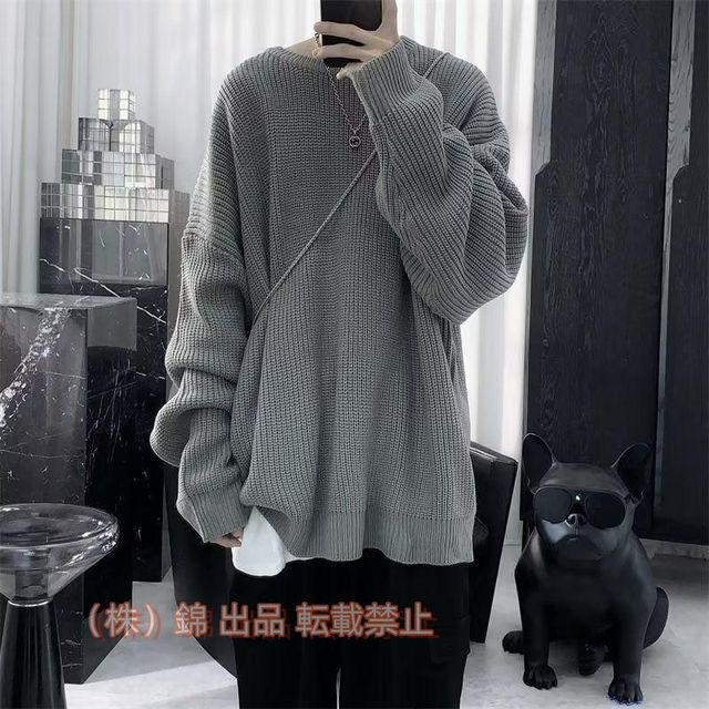 オーバーサイズ セーター メンズ 冬 オーバーサイズ ニットセーター メンズ ビッグシルエット ニット 株式会社錦メンズ レイヤード風ニット 冬服 メンズ