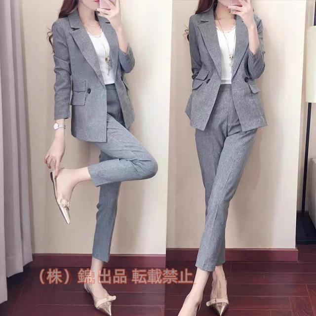 パンツスーツ レディース グレー スーツ フォーマル 通勤 OL 20代 30代 40代 カジュアルスーツ 株式会社錦入学式 卒業式 2点セット スーツ 春 秋