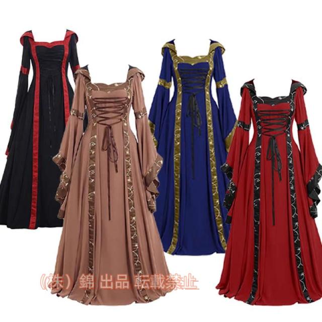 ハロウィン衣装ヨーロッパ中世宮廷服ドレス仮面舞踏会ロングドレス錦学園祭文化祭舞踏会コスチューム全4色ワンピースパーティードレス衣装コスプレ