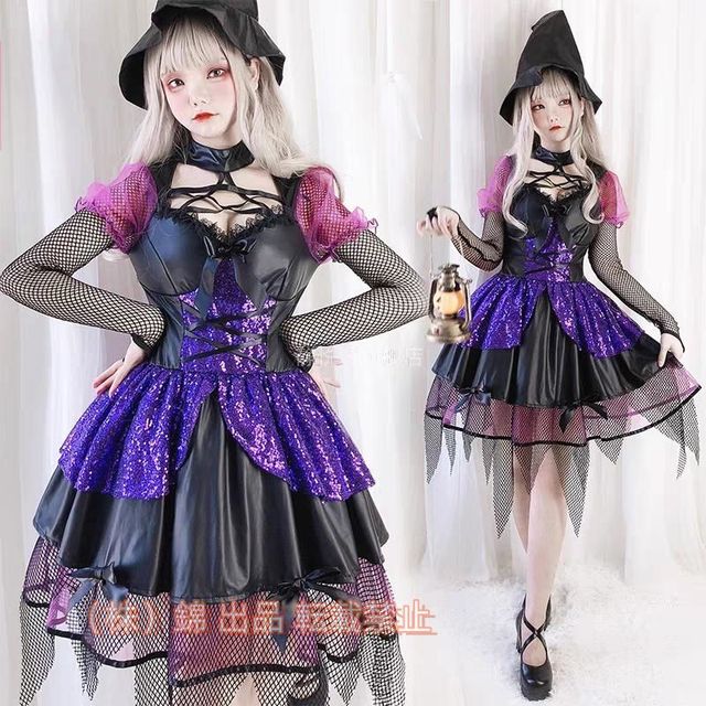 ハロウィン仮装大人女性悪魔パープル黒魔女デビルコスプレジュニアレディースハロウィーン衣装ワンピース株式会社錦キラキラセクシー可愛い変装2点セッ