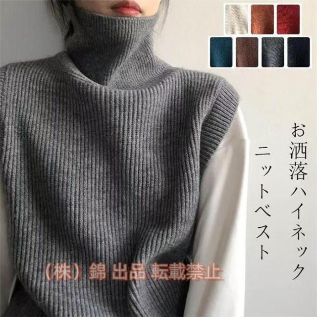 ニットベスト レディース ニット ベスト ハイネック 無地 プルオーバー 秋 冬 セーター ニットセーター ノースリーブ 袖なし トップス タートルネック リブニット タートル 重ね着 お洒落 アウター ショート ケーブル編み リブ編み