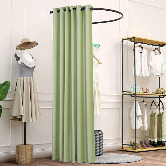 1. U字型のシンプルな更衣室:カーテン付きのシンプルな更衣室で、実用的で設置面積が小さいと同時に、モダンなアイアンスタイルでお店を飾ることもできます。