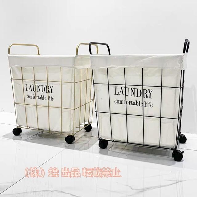 洗濯バスケット かご おしゃれ 洗濯物入れ 収納 布 ワイヤーバスケット 黒 洗濯カゴ キャスター