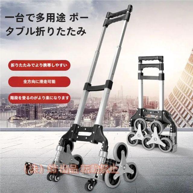 キャリーカートハンドトラック10輪階段三輪折りたたみ軽量段差台車4輪360度回転静音大型タイヤバッグ付け高さ調節固定ロープ付錦荷物運搬業務用