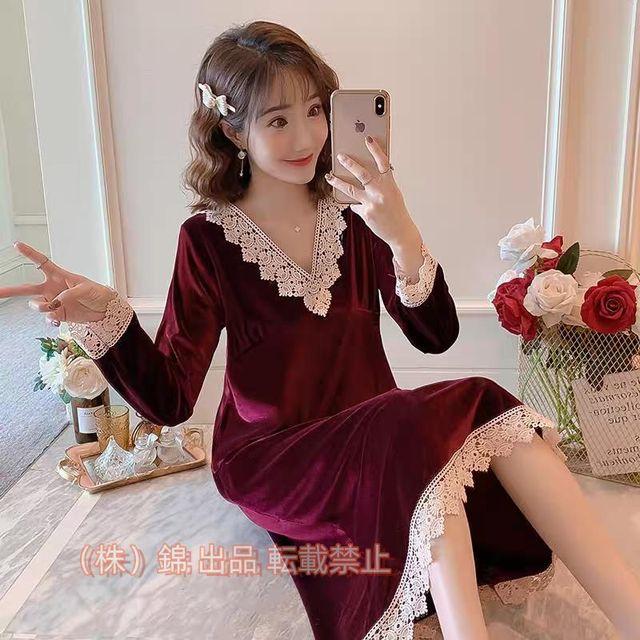 パジャマ レディース 冬 ベルベットワンピース 春 部屋着 ネグリジェ レース ナイトガウン 株式会社錦キャミソール 寝巻き ベロア 上品 おしゃれ 女性 秋物 冬