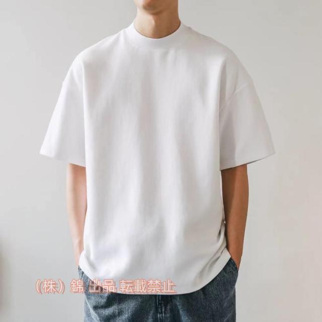 Tシャツ メンズ トップス 半袖 綿100% 無地 インナー ビジネス 通勤 株式会社錦 ボディワイルド ジャケット 襟高