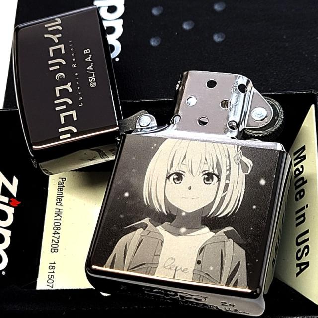 ZIPPO ライター リコリス・リコイル アニメ ジッポ 錦木千束 井ノ上たきな ロゴ 両面加工 ブラックニッケル レーザー彫刻 可愛い キャラクター おしゃれ 黒 メンズ レディース