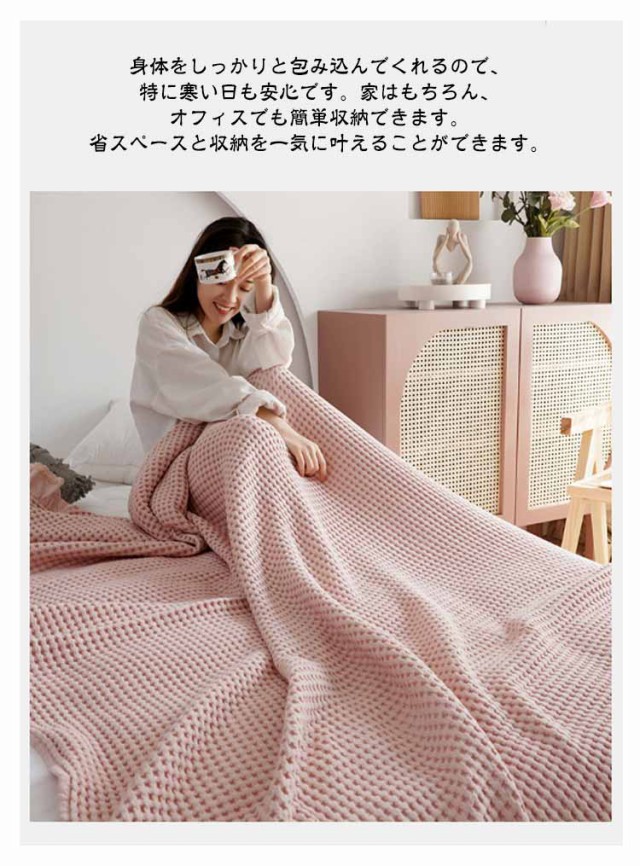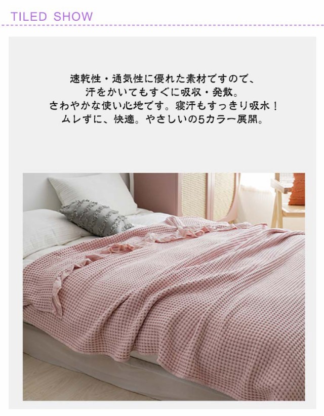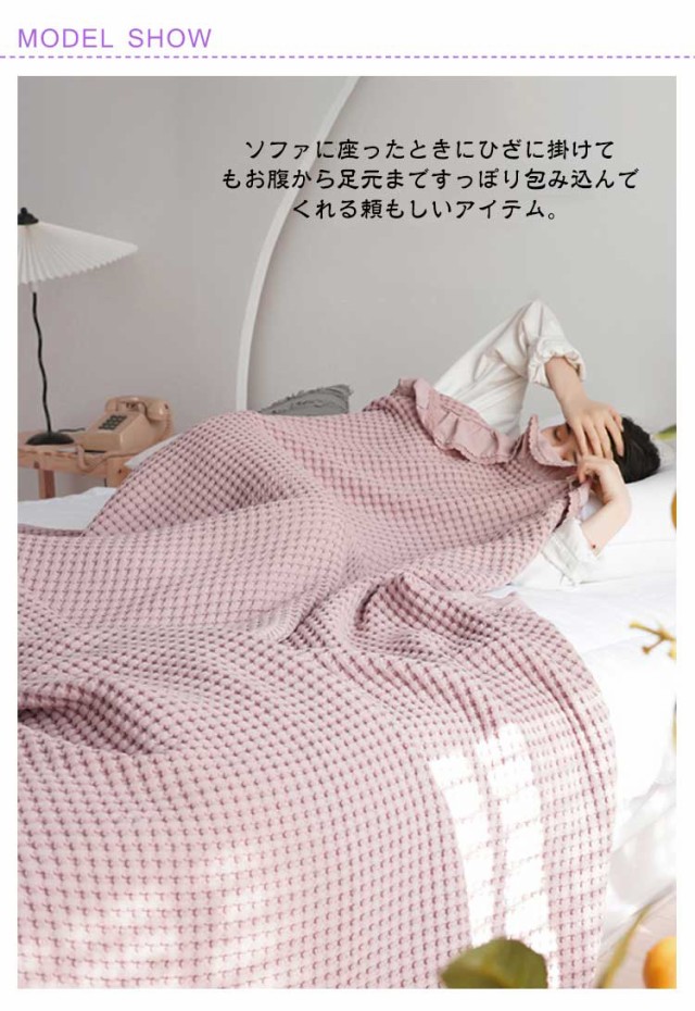 タオルケット ワッフルケット ブランケット シングル 綿 コットン 洗える 北欧 肌掛け マルチカバー ベッドカバー ソファーカバー ひざ掛け 肩掛け お昼寝 無地 春 秋 冬用 夏掛け おしゃれ 毛布 寝具 通気 冷房対策 オールシーズン かわいい リバーシブル ワッフル生地