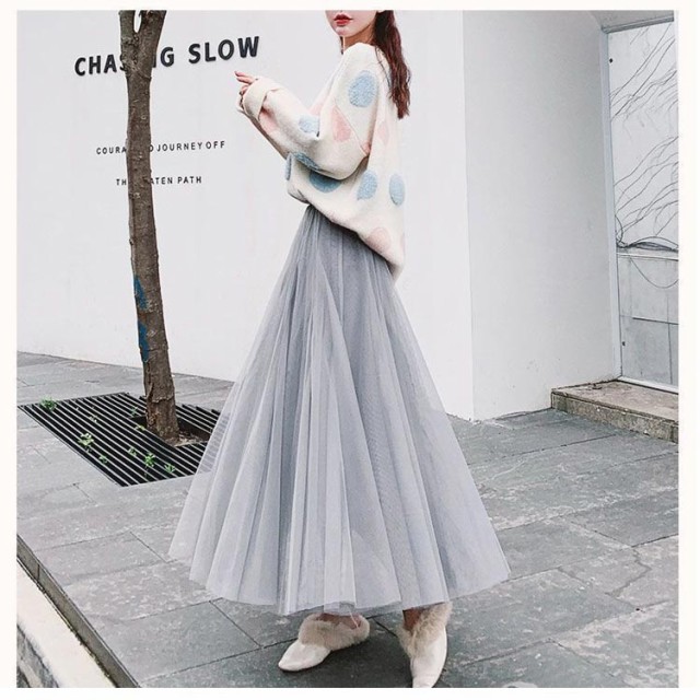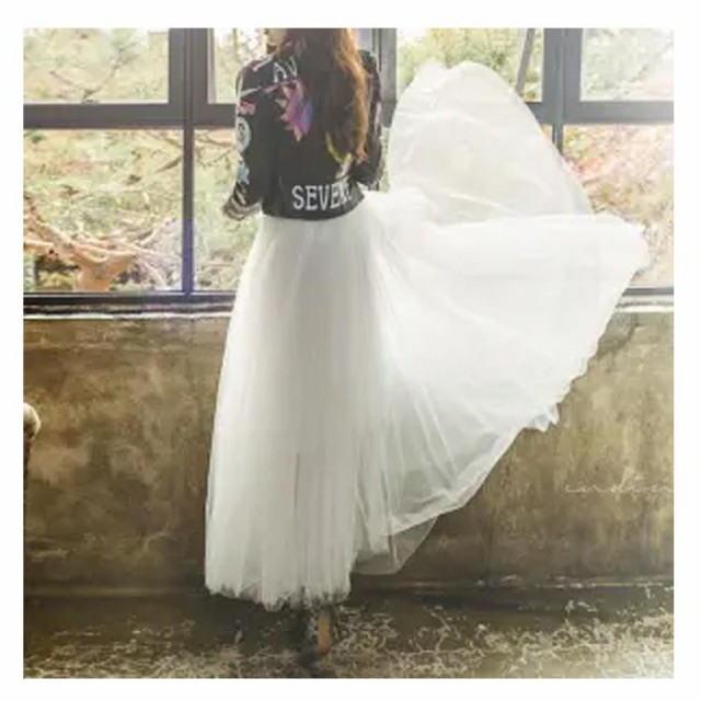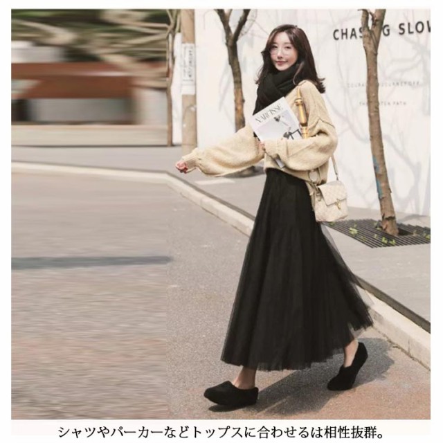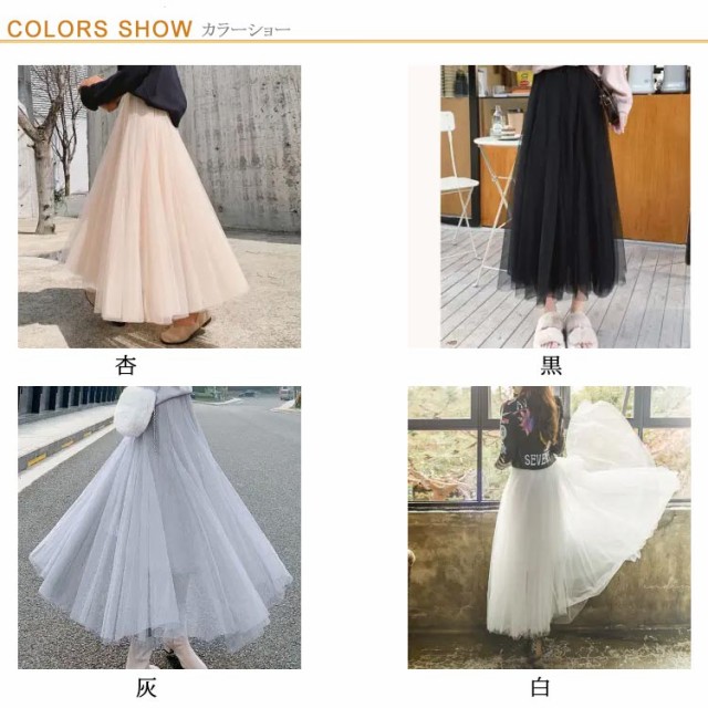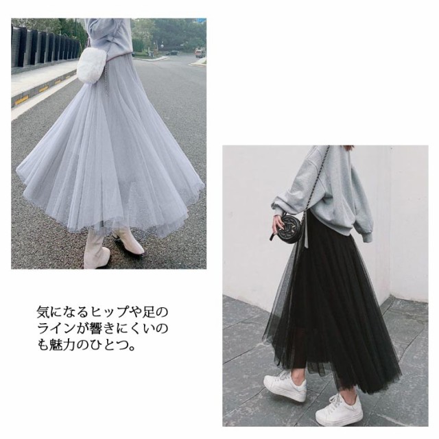 三重チュール ロングスカート チュールスカート フレアスカート マキシ丈 スカート マキシスカート ボリューム 揺れる Aラインスカート ウエストゴム 20代 30代 40代 春 夏 秋 ブラック ホワイト グレー ベージュ M L XL 2XL