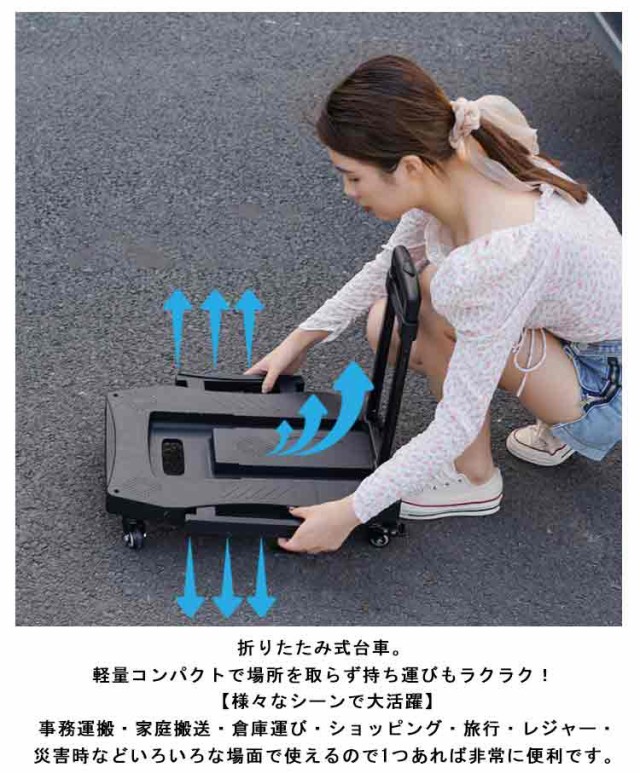 台車 折りたたみ 軽量 コンパクト 静音 キャスター付き 360度回転 室内 スチール 耐荷重100kg 5輪 4輪 キャリーカート 買い物 持ち運び ハンドキャリー ハンドル調整 荷台伸縮 手押し台車 荷物 運搬 移動 平台車 オフィス 家庭用 業務用 引っ越し