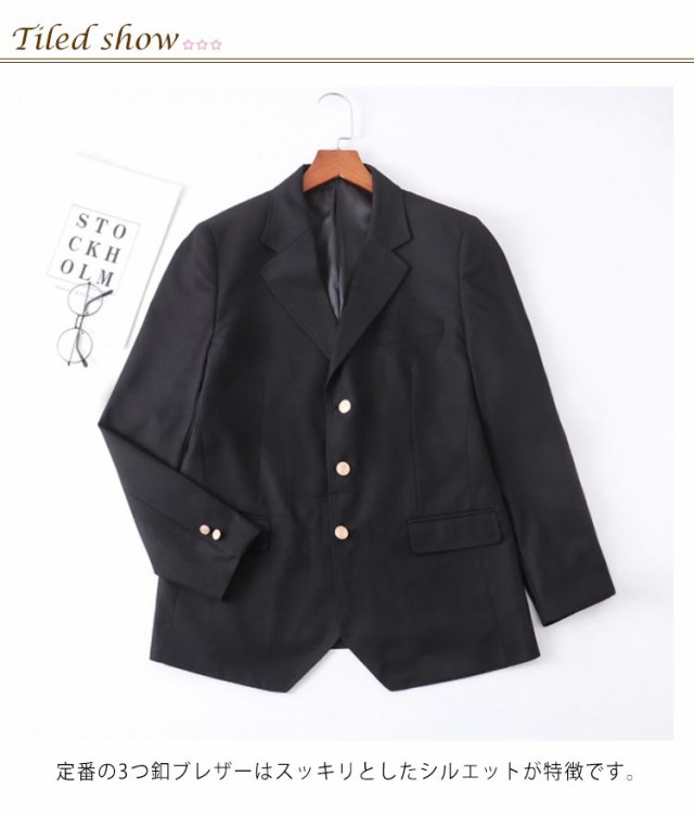 制服 ブレザー スクールブレザー スクールジャケット 金ボタン 三つボタン 学生服 スーツ ジャケット 裏地付き 女子高生 男子高生 女子 男子 高校生 中学生 スクール制服 テーラード ジャケット アウター 通学 春夏秋冬 ブラック 黒 茶色